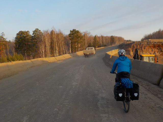 ホテル メドヴェジ・ウゴル → クラスノヤルスクを通過 → 124km目でテント泊